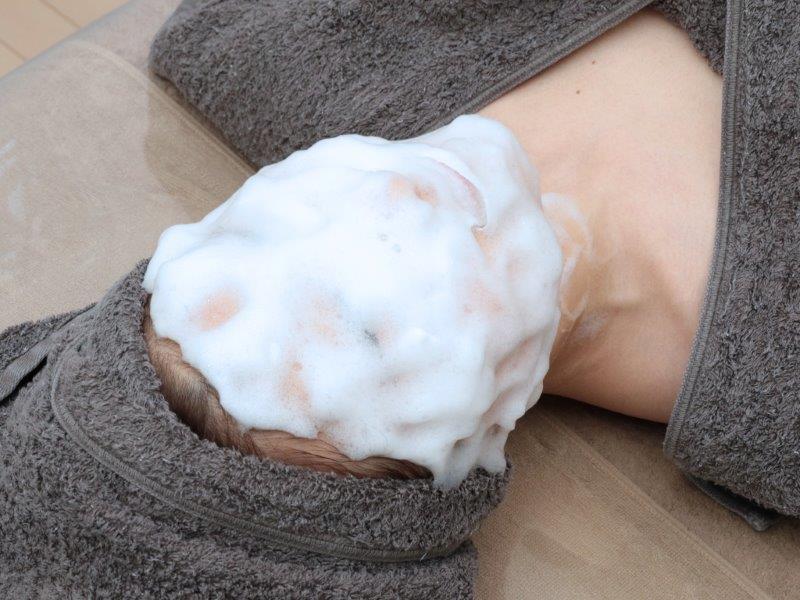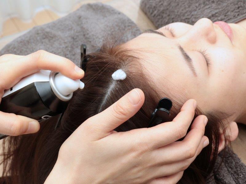 施術時間50分 頭皮マッサージ→炭酸頭皮ケア→ホルモン安定・滅菌→幹細胞導入→お仕上げ