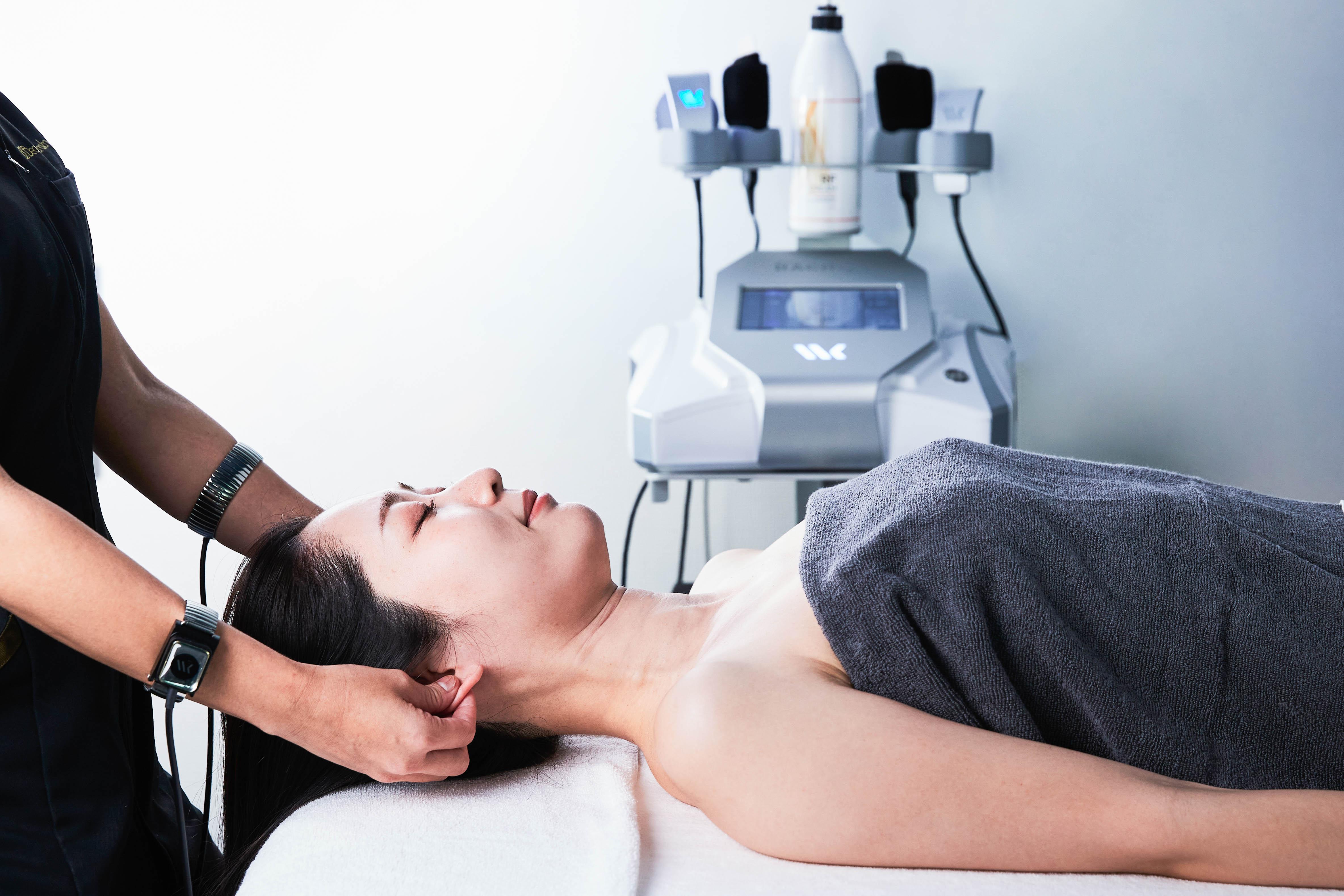 瀬術時間70分 ヘッド・上半身ストレッチ→リムーバークレンジング→リムーバーパック→ウォッシュパック→プレパレーショントリートメント(バック・デコルテ〜フェイス)→ロアブースター導入→幹細胞・水素パック→お仕上げ